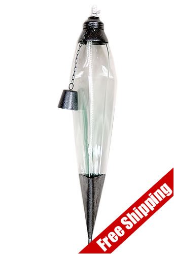 A great idea for large and small areas: a Ground / tiki / patio torch! This 17 Inch light will stand tall and look handsome in its Glass Container. With its attached snuffer (for those of us who need a little help keeping track of things) and fiberglass wick that never needs replacing, you will wonder how you lived without it! Long lasting fiber glass wick ; Includes Snuffer ; Powder Coated for durability ; Glass Oil Holder Height is 17 Inch ; Holds 36 oz Oil ; Tested in Lab for quality assurance ; FREE SHIPPING;