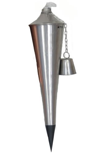 At 16 Inch tall, this is a great new concept in outdoor lighting: the Ground / tiki / patio torch! This torch is nickel plated and ready to light up your life. Comes with an attached snuffer and lifetime fiberglass wick. Nickle Plated ; Outdoor torch ; Snuffer included;