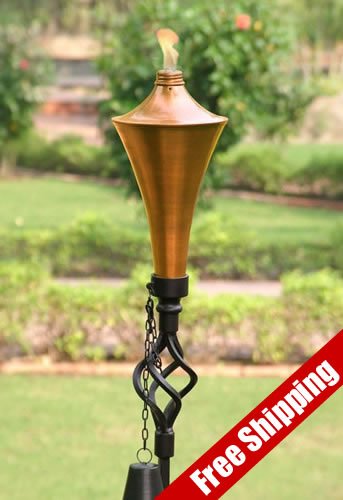 72 Inch Ground / tiki / patio torch (Set Of 12) Copper Your outdoor gatherings will never be the same after you set up these twelve 6 ft tall tiki torches and create some beautiful atmosphere. It has an L shaped shepherd hook base for easy insertion into the ground. The stem is made out of square pipe and twisted for added elegance. There is a decorative finial that transitions the rod to the can. The can is copper plated under a process to prevent rusting. Each outdoor garden torch comes complete with fiberglass wick that will last a lifetime. There is also a snuffer/cap attached by a chain. When not in use, the torches can be covered to keep out rainwater Light up your outdoor party area by combining this 72 inch Ground / tiki / patio torch with matching table torch or patio torch. The torches take regular citronella oil