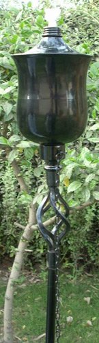 Your outdoor gatherings will never be the same after you set up these six 6 ft tall tiki torches and create some beautiful atmosphere. Snuffer caps and powder coated garden poles are included with all garden tiki torches. Easy fill container uses standard lamp oil or citronella torch oil to repel insects. Each outdoor garden tiki torch comes complete with fiberglass wick that will last a lifetime. Light up your outdoor party area by combining this 72 inch ground tiki torch with our other garden items. Shiny Black Metal Torches ; Shiny Black Can Height is 7 Inch ; Holds 30 oz oil ; Burns for 10-12 hours ; Long lasting fiber glass wick ; Includes Snuffer ; Powder Coated for durability ; Tested in Lab for quality assurance ; 72' Knock down torches ; Shepherd hook at the bottom for easy ground insertion ;